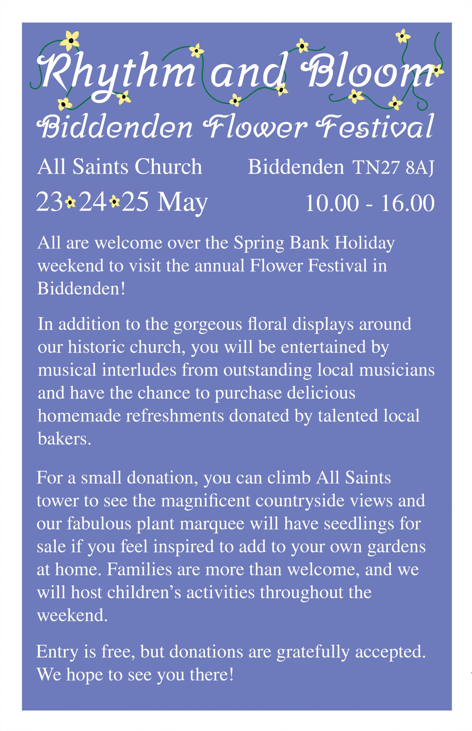 Box Office: £15 fundraising.biddenden@sbcofe.org Cash Bar & Raffle available.